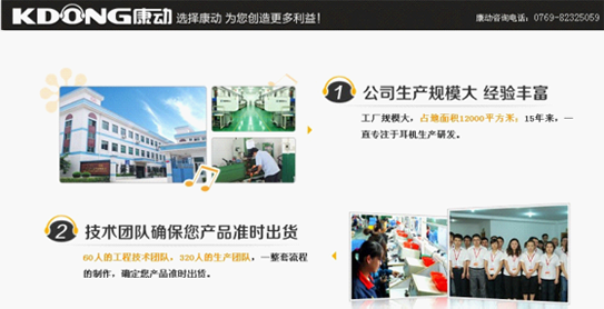 东莞市康动电子有限公司成立于2002年,是一家专门从事开发,生产,销售各式耳机、手机耳机、音乐耳机、蓝牙耳机线和数据线的专业厂家,能为客户量身定做各式专业性耳机。